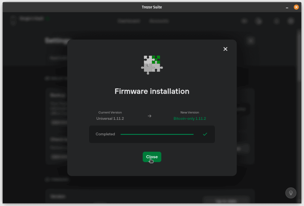 And that is it after this your Trezor should be Bitcoin only helping you reduce attach surface by removing all other coin software from the device firmware.