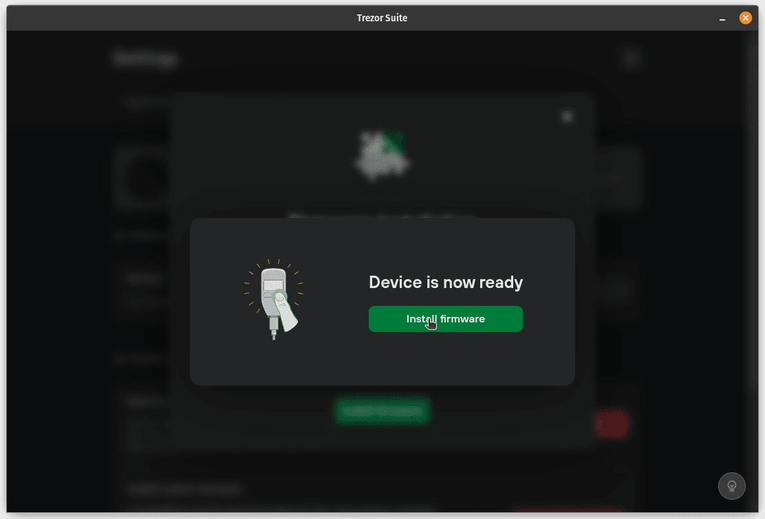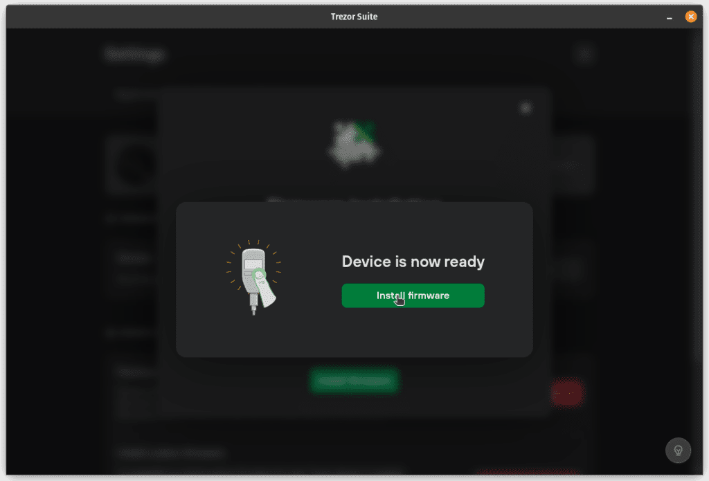 Next once you have entered bootloader mode click “Install firmware” on your Trezor Suite App and on you Trezor click the right button to confirm the installation of new firmware.