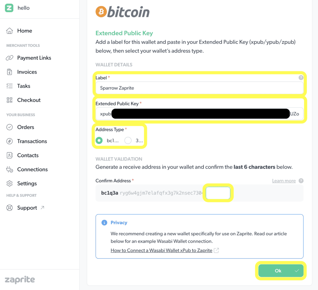 And with this your Bitcoin wallet has been connected to Zaprite and you can start accepting payments via on-chain bitcoin.