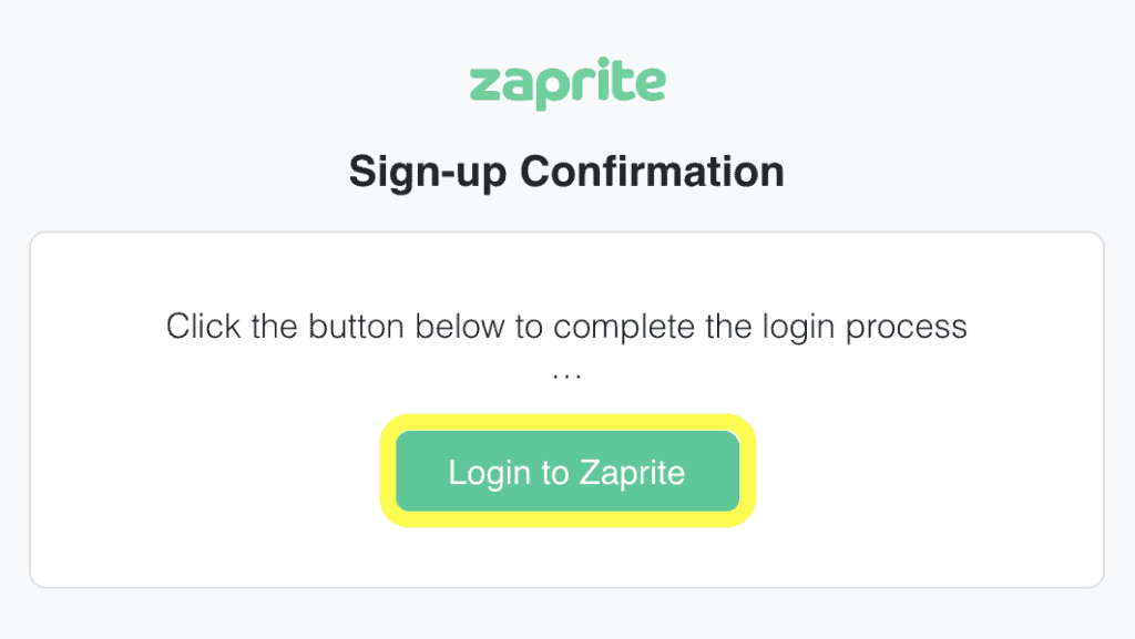 Once you click create account that’s it your account has been created no other info needed, you will receive an email log in link, click Login to Zaprite and you will be taken to your new dashboard.